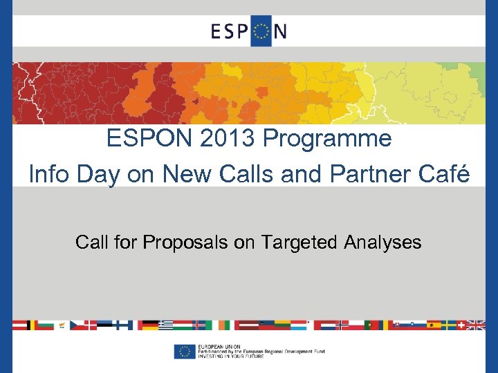 ESPON 2013 Programme Info Day on New Calls and Partner Café Call for Proposals on Targeted Analyses