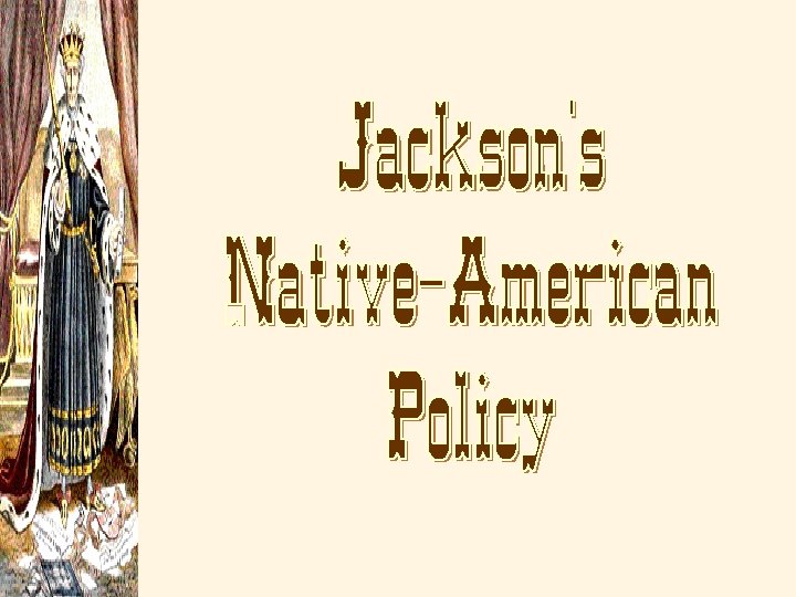 Indian Removal 3 Jackson’s Goal? 3 1830 Indian Removal Act 3 Cherokee Nation v. GA (1831) 3 Worcester v. GA (1832) 3 Jackson: * “domestic dependent nation” John Marshall has made his decision, now let him enforce it!