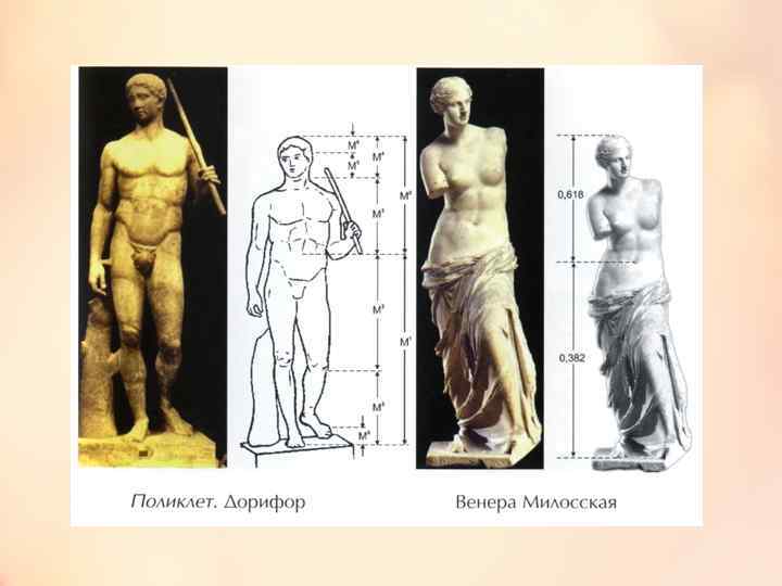 Особенно важную роль в искусстве играет золотая пропорция — пропорция золотого сечения, пропорция золотого сечения применявшаяся со времен Античности.