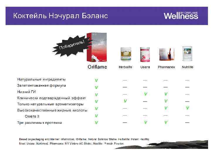 Представления о красоте меняются Опрос «С чего начинается ваша красота? » 9. 8% Хорошее самочувствие и состояние здоровья 90% женщин – 20. 9% 45. 3% аудитория Вэлнэс от Орифлэйм ? Стройный силуэт и подтянутая фигура Прекрасное состояние кожи 23. 9% Опрос проводился на сайте psychologies. ru в дек. 2011 -янв. 2012; в нем приняли участие 1067 женщин Макияж, подчеркивающий достоинства