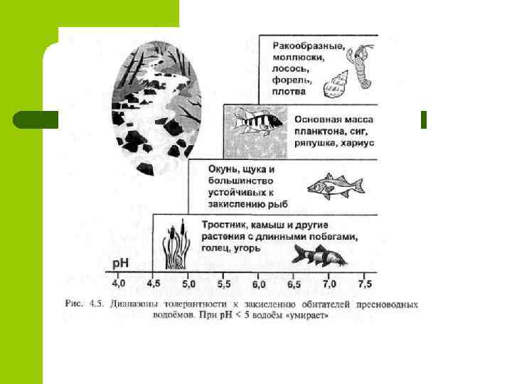 Кислотное загрязнение Помимо прямого негативного воздействия на биоту закисленные воды переводят в растворимые формы опасные для биоты вещества, содержащиеся в подстилающих породах, например алюминий и другие металлы. l Соединения окисленного азота способствуют эвтрофикации водоемов, причем не только пресноводных, но и целых морей, например Балтийского моря. l Находящиеся в воздухе сернистый ангидрид, озон и азотная кислота представляют собой и непосредственную угрозу для живых организмов. l Эти вещества вызывают прямой ожог растительности, а в больших концентрациях опасны и для человека, и животных. Гибель деревьев вдоль автомобильных дорог с интенсивным движением — прямое следствие озонового ожога. В городах в жаркую погоду образуется озоновый смог, вызывающий удушье, способное привести к смерти людей, страдающих сердечнососудистыми и легочными заболеваниями. В Западной и Центральной Европе, а также во многих регионах европейской части России, концентрации озона, превышающие ПДК, отмечаются летом над обширными территориями. Зимой наблюдаются значительные превышения ПДК по сернистому газу. l Несмотря на меры, принятые в последнее десятилетие в развитых странах, выбросы окислов серы и азота остаются гигантскими. l Если бы эти сульфаты не нейтрализовались аммиаком и гумусом почвы, то такой поток серной кислоты давно превратил бы эти регионы в пустыню. l