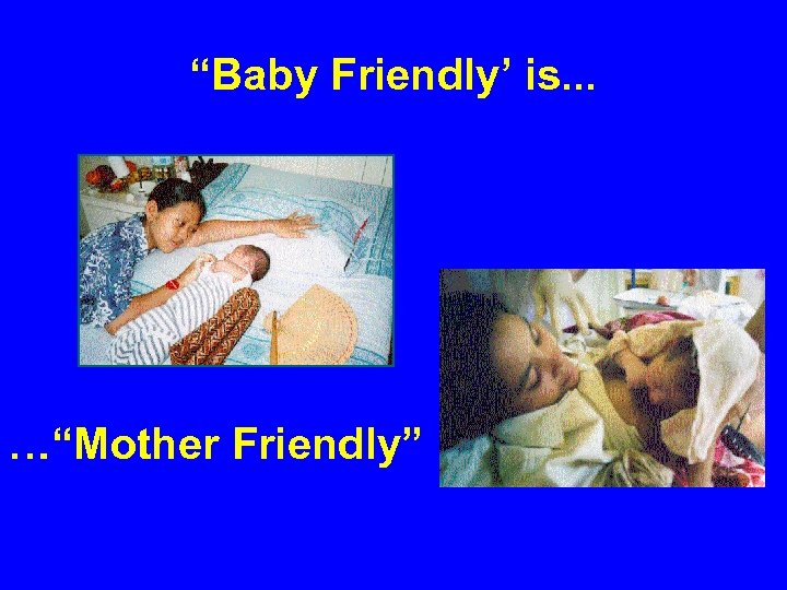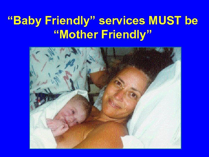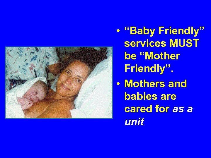 • “Baby Friendly” services MUST be “Mother Friendly”. • Mothers and babies are cared for as a unit
