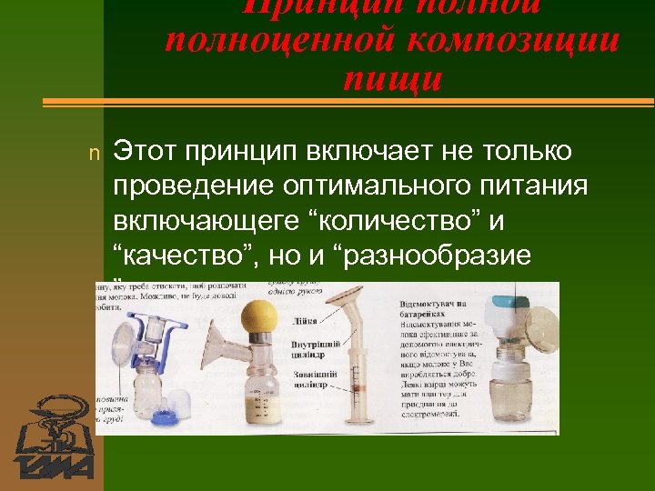 Принцип полной полноценной композиции пищи n Этот принцип включает не только проведение оптимального питания включающеге “количество” и “качество”, но и “разнообразие ”питания
