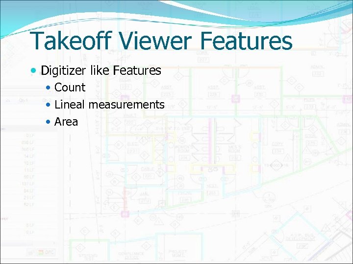 Takeoff Viewer Features Digitizer like Features Count Lineal measurements Area