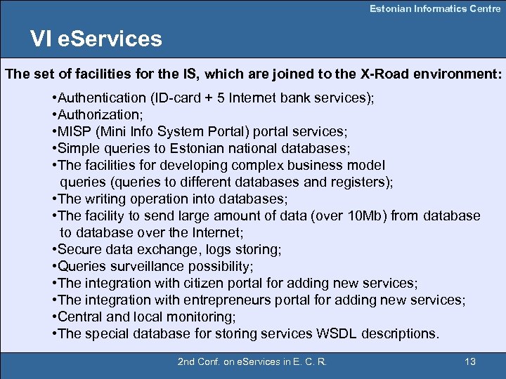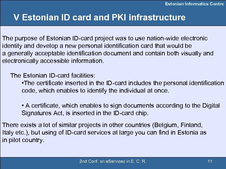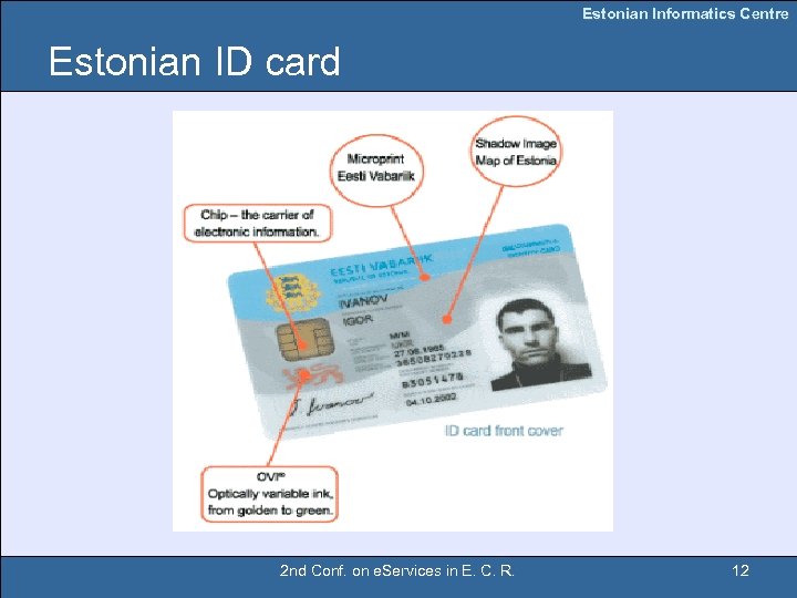 Estonian Informatics Centre Estonian ID card 2 nd Conf. on e. Services in E. C. R. 12