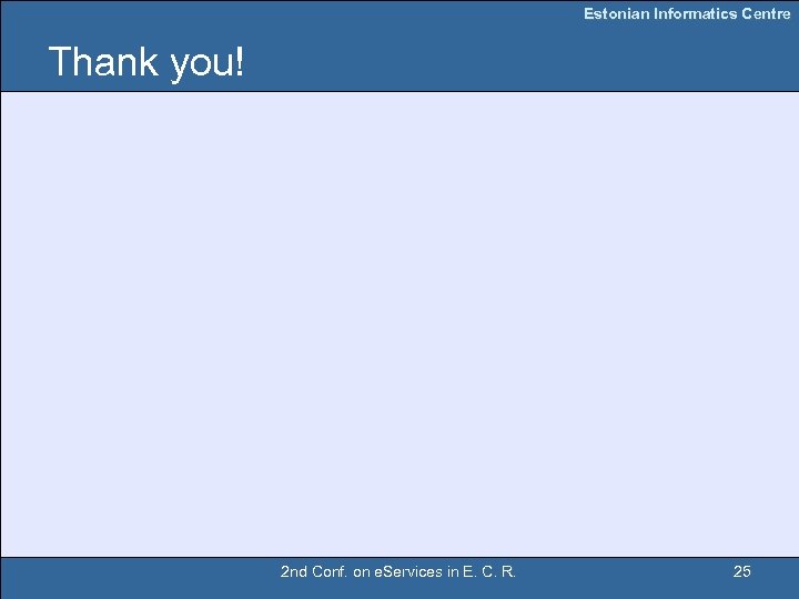 Estonian Informatics Centre Thank you! 2 nd Conf. on e. Services in E. C. R. 25