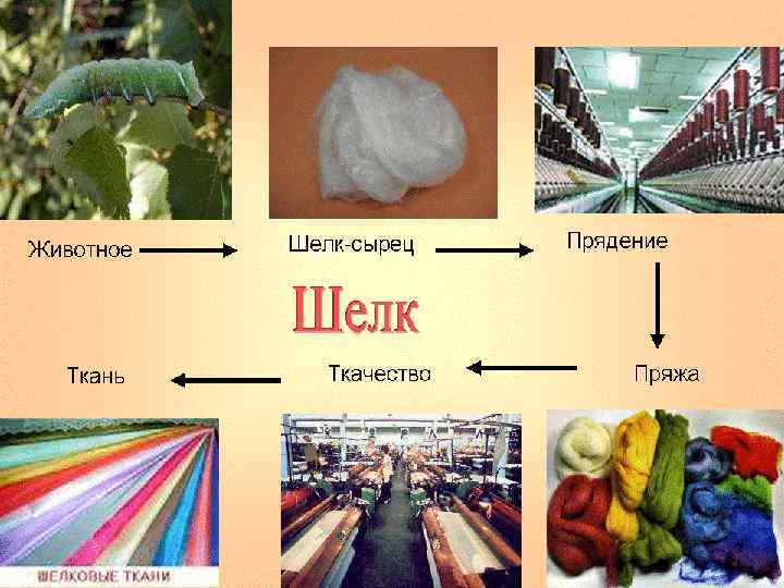 Шелковая ткань изготовляется из нитей, получаемых из коконов гусениц тутового шелкопряда. Их разведение требует большого внимания и кропотливого труда. Гусеницы выводятся из яиц (грены) при температуре 23 – 25 С. В больших шелководческих хозяйствах грены помещают в специальные инкубаторы, где поддерживается необходимая температура и влажность. Для развития яиц требуется 8– 10 дней, после чего на свет появляются маленькие, длиной всего около 3 мм личинки. Они окрашены в темно-бурый цвет и покрыты пучками длинных волос. Вылупившихся гусениц переносят на специальную кормовую этажерку в хорошо проветриваемом помещении с температурой 24– 25 С. Каждая такая этажерка состоит из нескольких полок. На полках – свежие листья шелковицы. Кормить червей можно только листьями дерева шелковицы, причем совершенно чистыми, исключительно свежими и сухими. Аппетит гусениц растет не по дням, а по часам. При 20– 25 С развитие личинки завершается примерно за месяц, при более высокой температуре – быстрее. Взрослая гусеница, как правило, бывает телесного цвета, длинной в 7 -8 см. и толщиной с мизинец. Для этого шелкопрядов раскладывают по соломенным коробочкам, там они и создают коконы. Созданию кокона способствуют так называемые шелкоотделительные железы гусениц - это маленький бугорок под нижней губой, из которого сочится клейкое вещество, которое при соприкосновении с воздухом тут же застывает и превращается в шелковую нить
