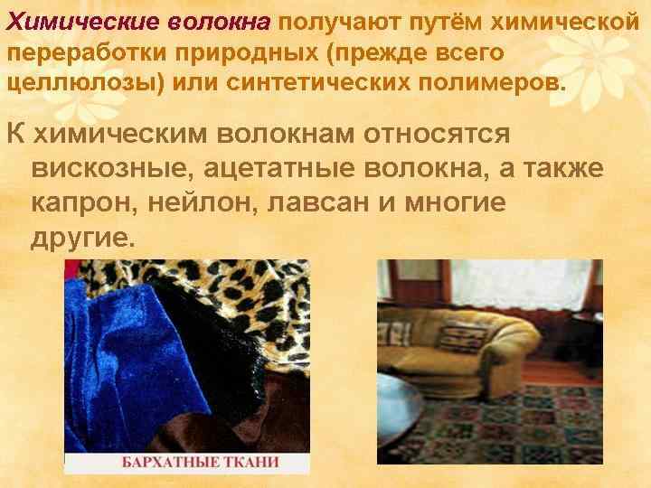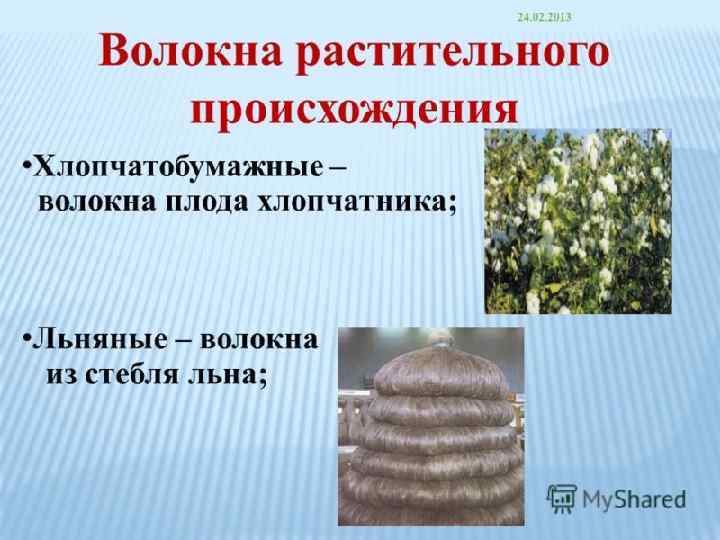 Натуральные волокна Растительного происхождения (хлопок, лен) Животного происхождения (шелк, шерсть, кожа)