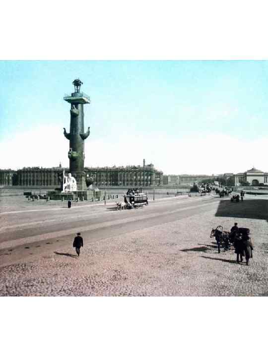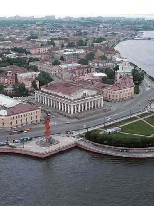 1805 -10, арх. Т. де Томон. У подножия Р. К. изваяния (скульпторы Ж. Тибо, Ж. Камберлен), символизирующие реки: у сев. колонны — Волга и Днепр, у южной — Нева и Волхов. Скульптуры вырублены из пудостского камня артелью С. К. Суханова,
