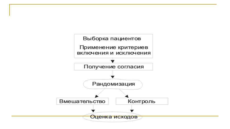 Типы исследований эффективности вмешательств n n n НЕКОНТРОЛИРУЕМЫЕ описание случая, серии случаев исследования взаимосвязей ( «поперечные» ) когортные исследования типа «случай контроль» неконтролируемые клинические испытания КОНТРОЛИРУЕМЫЕ Рандомизированные и нет С плацебо контролем и без «Слепые» и «открытые» Большие (тыс. ) и малые (десятки и сотни) Многоцентровые и нет