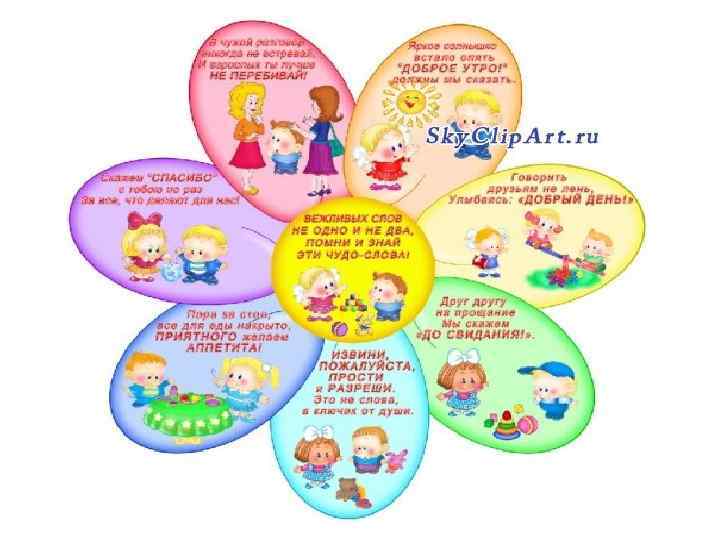 нельзя давать прозвища другим детям, обзывать их, это обидно; если кто-то поступил нечестно или неправильно, не нужно его оскорблять, достаточно указать ему на его поступок; с чужой вещью необходимо обращаться аккуратно, после чего вернуть владельцу; при встрече и расставании с друзьями всегда следует здороваться и прощаться; обидев кого-то нечаянно либо намеренно, нужно сразу же извиниться и помириться с ним (кстати, есть очень много считалок для примирения); недопустимо дразнить более слабого ребенка или высмеивать чужие неудачи – лучше помочь; не стоит ябедничать по пустякам, но о серьезных проделках необходимо рассказать взрослым.