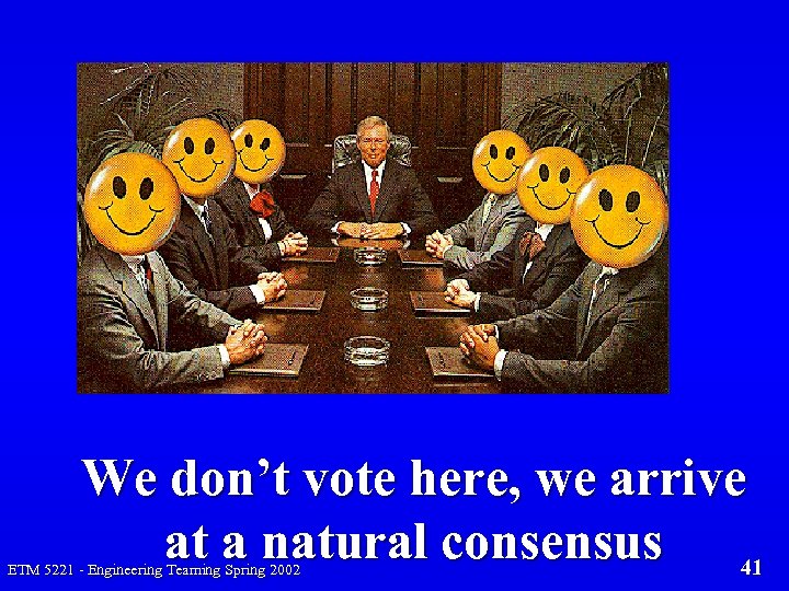 We don’t vote here, we arrive at a natural consensus 41 ETM 5221 - Engineering Teaming Spring 2002