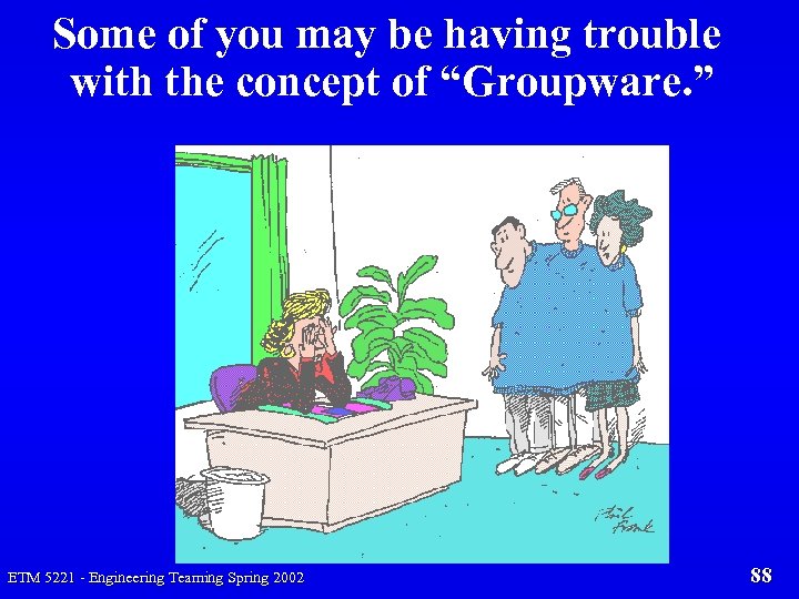 Some of you may be having trouble with the concept of “Groupware. ” ETM 5221 - Engineering Teaming Spring 2002 88