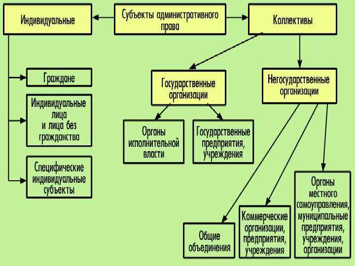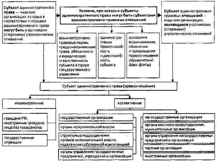 это лицо или организация, которые в соответствии с действующим законодательством РФ могут быть участниками (сторонами) регулируемых административных управленческих общих отношений. Главное, что объединяет многообразные субъекты административного права, - это администратиная правоспособность.