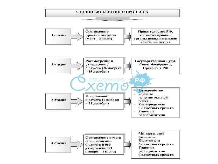 Правительство РФ организует поэтапную работу по составлению проекта федерального бюджета. В определенные сроки составляются прогнозы социально-экономического развития, сводный баланс финансовых ресурсов, основные направления бюджетной политики РФ, рассчитываются контрольные цифры проекта федерального бюджета на соответствующий период и другие документы. Территориальные органы исполнительной власти ведут детальную проработку и согласование показателей социально-экономического развития и контрольных цифр федерального бюджета.