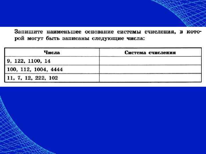 Переведите числа • 1011012 = X 10 • 1101112 = X 10 • 11110012 = X 10