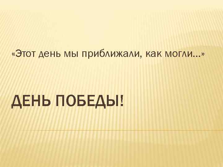 «Этот день мы приближали, как могли…» ДЕНЬ ПОБЕДЫ!
