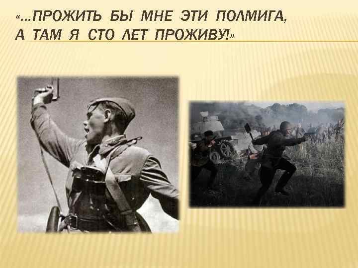 «…ПРОЖИТЬ БЫ МНЕ ЭТИ ПОЛМИГА, А ТАМ Я СТО ЛЕТ ПРОЖИВУ!»