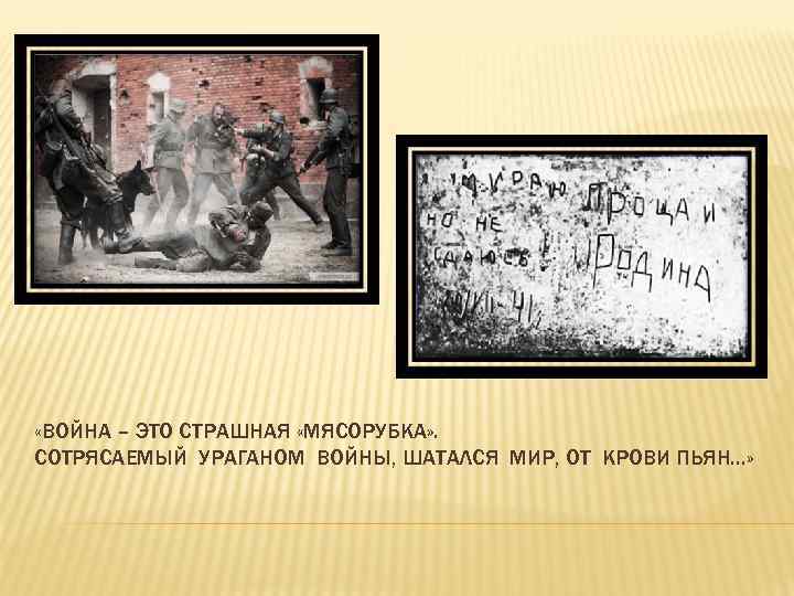 «ВОЙНА – ЭТО СТРАШНАЯ «МЯСОРУБКА» . СОТРЯСАЕМЫЙ УРАГАНОМ ВОЙНЫ, ШАТАЛСЯ МИР, ОТ КРОВИ ПЬЯН…»
