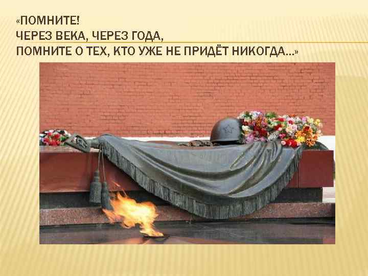 «ПОМНИТЕ! ЧЕРЕЗ ВЕКА, ЧЕРЕЗ ГОДА, ПОМНИТЕ О ТЕХ, КТО УЖЕ НЕ ПРИДЁТ НИКОГДА…»
