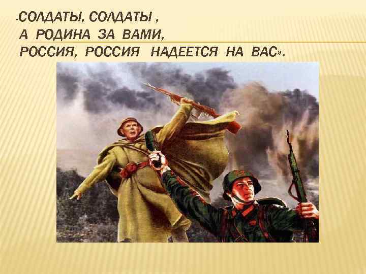 « СОЛДАТЫ, СОЛДАТЫ , А РОДИНА ЗА ВАМИ, РОССИЯ НАДЕЕТСЯ НА ВАС» .