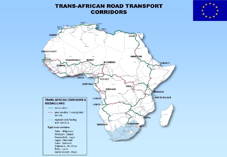 EU Infrastructure Trust Fund for Africa • Mo. U signed between Commission and EIB in February 2006 • Trust Fund will be a financial instrument of Infrastructure Partnership, covering investments in continental networks • Commission will make a contribution of € 60 m to cover the period 20062007. Financing proposal will be ready in October ‘ 06 • EIB will mobilise up to € 260 million in loans for the same period