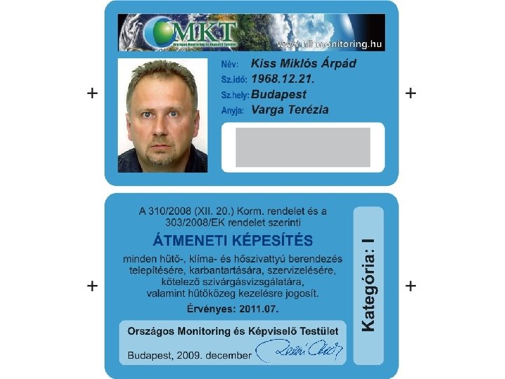 Personnel certification • Interim (Updated) card with hologram, • Interim categories based on old HRACA and final F-gas system (B – B-I, C – CII, E – MAC VII) • Final categories by 303/2008/EC, plus MAC VI, MAC VII • New F-gas card, ID by barcode • Everything is in the Body’s IT system