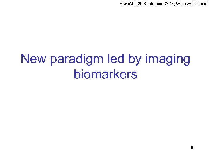 Eu. So. MII, 25 September 2014, Warsaw (Poland) New paradigm led by imaging biomarkers 9