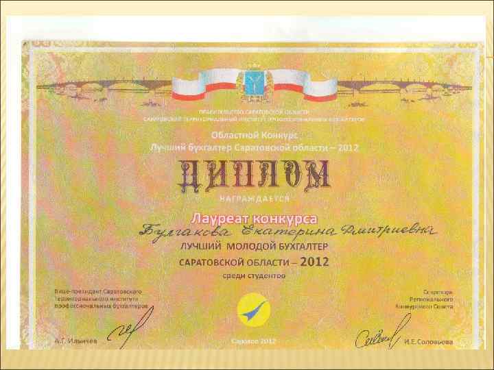 Студентки группы Булгакова Е. Д. и Кожан Д. Ш. приняли участие в Областном конкурсе «Лучший молодой бухгалтер Саратовской области – 2012» , и получили заслуженные награды.