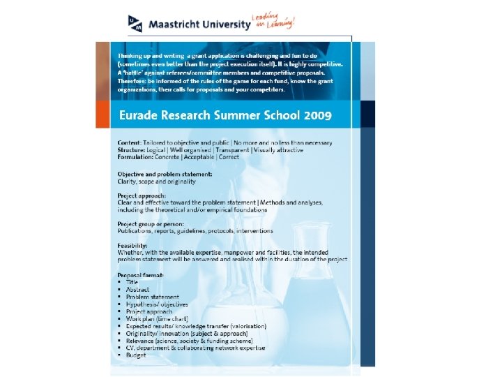 EURADE How to form a consortium Maastricht University – Centre for Contract Research Professional acquisition and management of research funding is both a complex process as well as an overall new mindset! The Centre for Contract Research manages this process and assists in the further development of such a mindset.