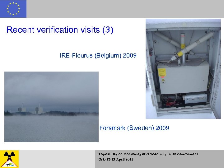 Recent verification visits (3) IRE-Fleurus (Belgium) 2009 Forsmark (Sweden) 2009 Topical Day on monitoring of radioactivity in the environment Oslo 12 -13 April 2011