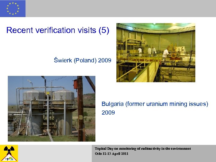 Recent verification visits (5) Świerk (Poland) 2009 Bulgaria (former uranium mining issues) 2009 Topical Day on monitoring of radioactivity in the environment Oslo 12 -13 April 2011