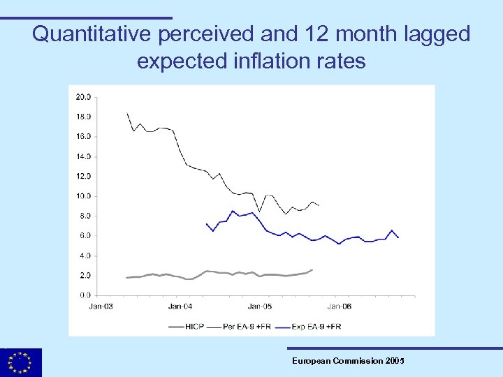Quantitative perceived and 12 month lagged expected inflation rates European Commission 2005