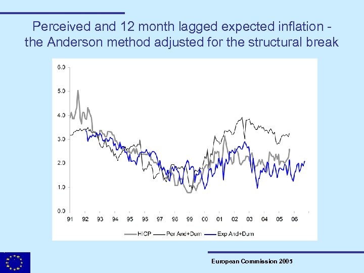 Perceived and 12 month lagged expected inflation the Anderson method adjusted for the structural break European Commission 2005