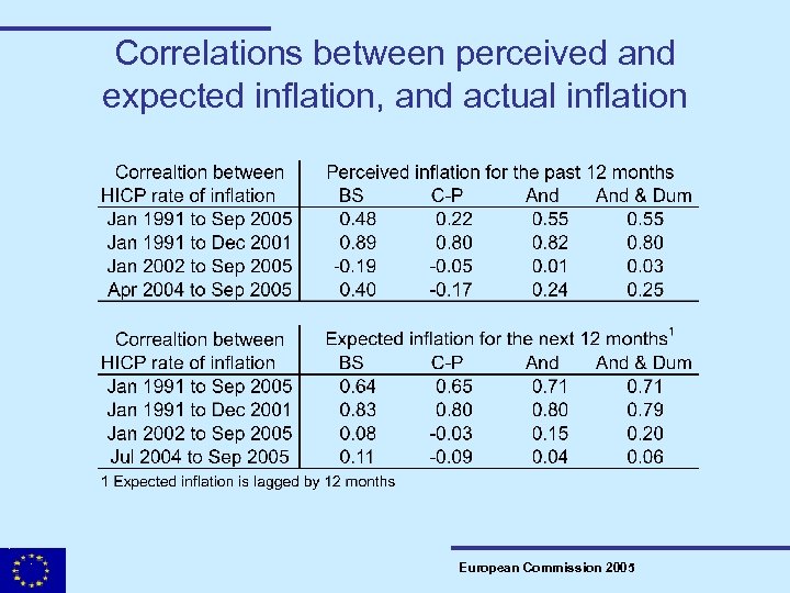 Correlations between perceived and expected inflation, and actual inflation European Commission 2005