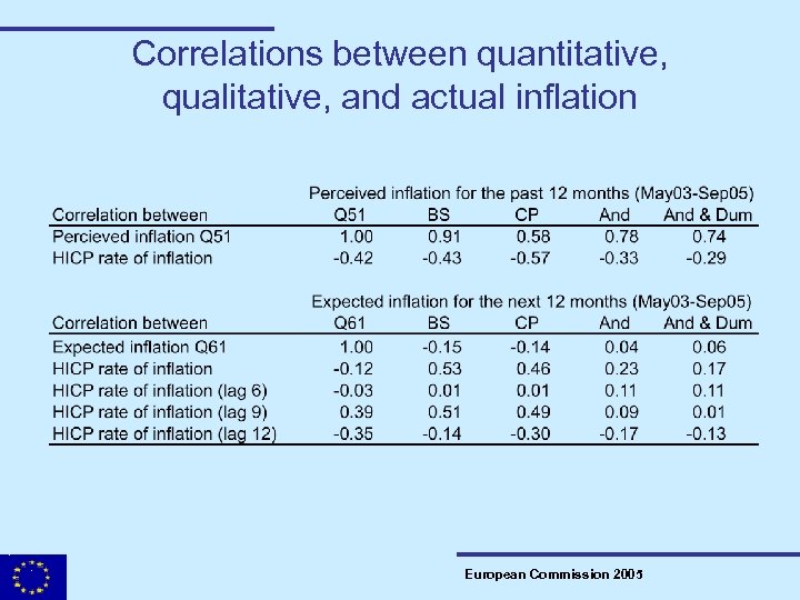 Correlations between quantitative, qualitative, and actual inflation European Commission 2005