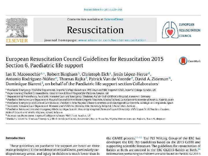European Resuscitation Council CPR Guidelines – 2015 РЕАНИМАЦИОННЫЕ МЕРОПРИЯТИЯ У ДЕТЕЙ Юрий Кривонос Кафедра педиатрии № 4 Национального медицинского университета им. А. А. Богомольца