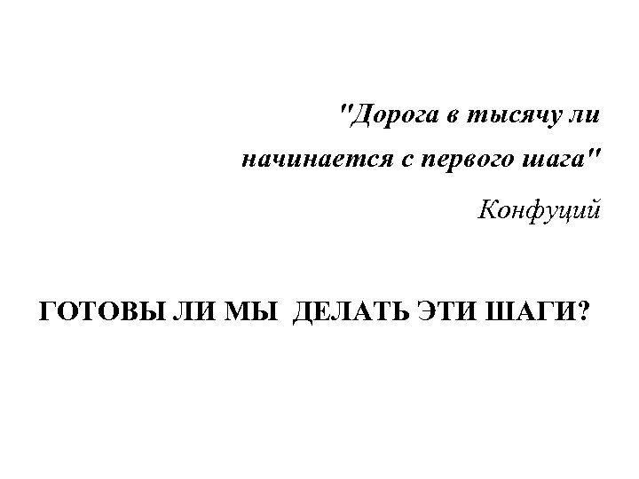 "Дорога в тысячу ли начинается с первого шага" Конфуций ГОТОВЫ ЛИ МЫ ДЕЛАТЬ ЭТИ ШАГИ?