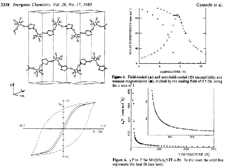 “Toward Molecular Magnets: The metal-radical approach“ Caneschi, D. Gatteschi, R. Sessoli, P. Rey, Acc. Chem. Res. 22, 392 (1989). - Since (and prior to) 1989, literally hundreds of metal-radical complexes have been reported, including a number of magnetically ordered materials. - A wealth of knowledge about the structure and magnetic properties of coordination complexes containing stable radical ligands has been unearthed, and as a result, the metal-radical approach is recognized as one of the more fruitful efforts toward molecular magnetic materials. Lemaire, Pure Appl. Chem. , Vol. 76, No. 2, pp. 277– 293, 2004.