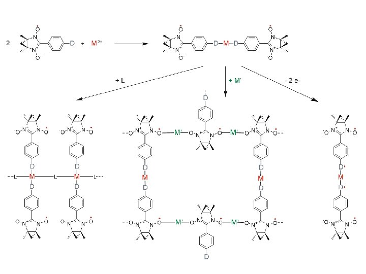 “Toward Molecular Magnets: The metal-radical approach“ Caneschi, D. Gatteschi, R. Sessoli, P. Rey, Acc. Chem. Res. 22, 392 (1989). The strategy is simple: - Strong direct metal-ligand magnetic exchange interactions are achieved from the coordination of stable free radicals to paramagnetic transition-metal ions, - and if these interactions are extended in one, two, or three spatial directions, cooperative magnetic behavior is obtainable in these molecule-based systems. Lemaire, Pure Appl. Chem. , Vol. 76, No. 2, pp. 277– 293, 2004.