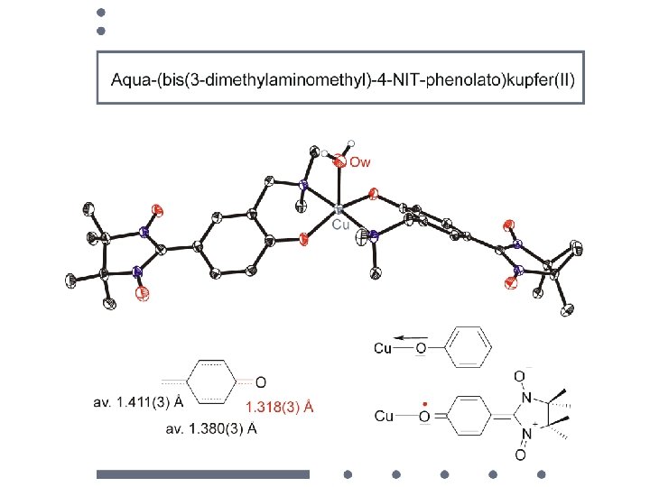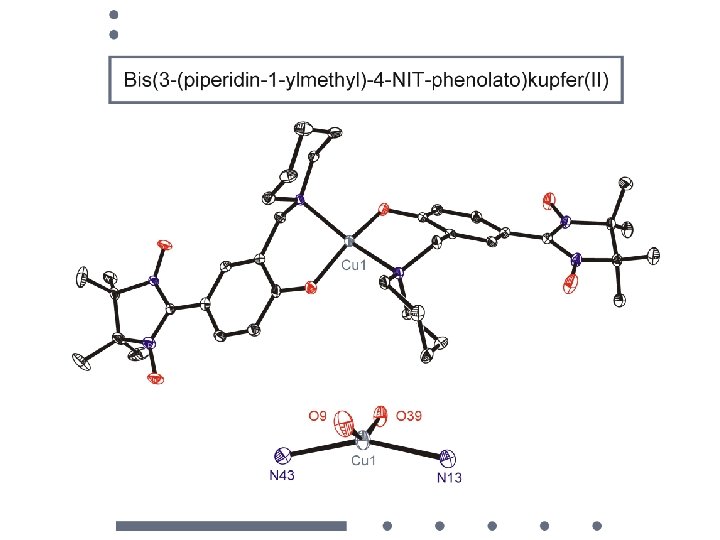 [Cu(hfac)2, (NITEt) c vs. T follows the Curie law with C = 0. 4639 S = 1/2 with g = 2. 225. J 1 J 2 J 1 Cu 2 ------R------Cu 1 ------R------Cu 2 nitroxide occupies an - equatorial position in the coordination environment of copper(II) strongly coupled - axial position a weak-to-moderate coupling.