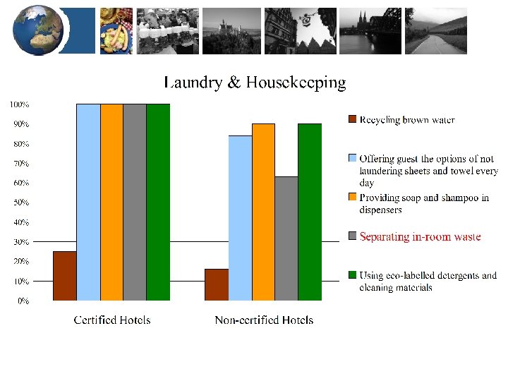 Why not more sustainable German hotels? ENVIRONMENTAL BENEFITS Design Energy Water Waste Refurbishment Sourcing BUSINESS BENEFITS Customers Staff loyalty Legal compliance Company image Risk management Social progress