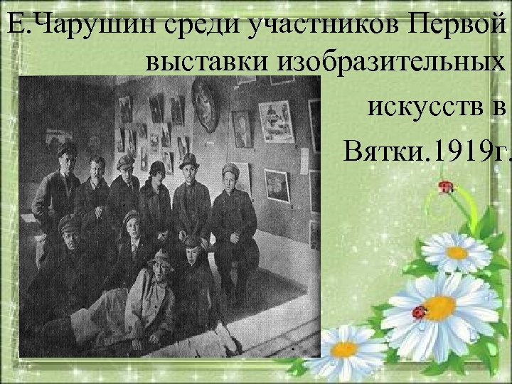 Е. Чарушин среди участников Первой выставки изобразительных искусств в Вятки. 1919 г.