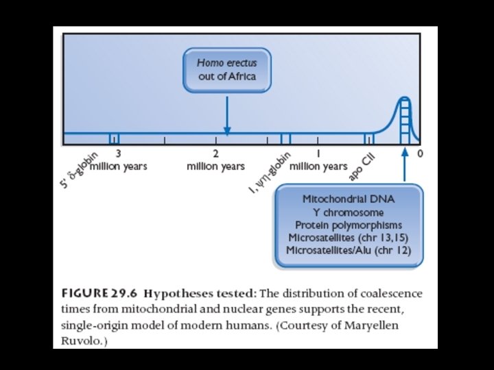 Tiempos de coalescencia y el origen de los hombres modernos Reemplazo rápido – Origen reciente Multirregional