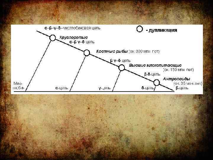 Ancestral globin duplication globin + Gene 2 globin hemoglobin Gene 1 myoglobin New gene Duplication Recombination