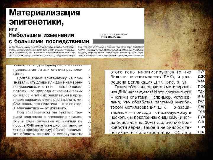 1) не только хромосомы, но и вся клетка участвует в работе «аппарата» наследственности; 2) внешняя среда оказывает существенное влияние на наследственность; 3) некоторые приобретённые признаки наследуются; 4) путём особого «воспитания» организмов - изменения внешней среды их обитания - можно получать направленные наследуемые изменения. «Советский творческий дарвинизм» диалектичен: он отвергает как «односторонний, плоский эволюционизм» ( «плоская эволюция без скачков» ) Дарвина, так и «идеализм» Ламарка, но берет от дарвинизма «материализм» и от ламаркизма идею «активного развития» ( «диалектику» ).