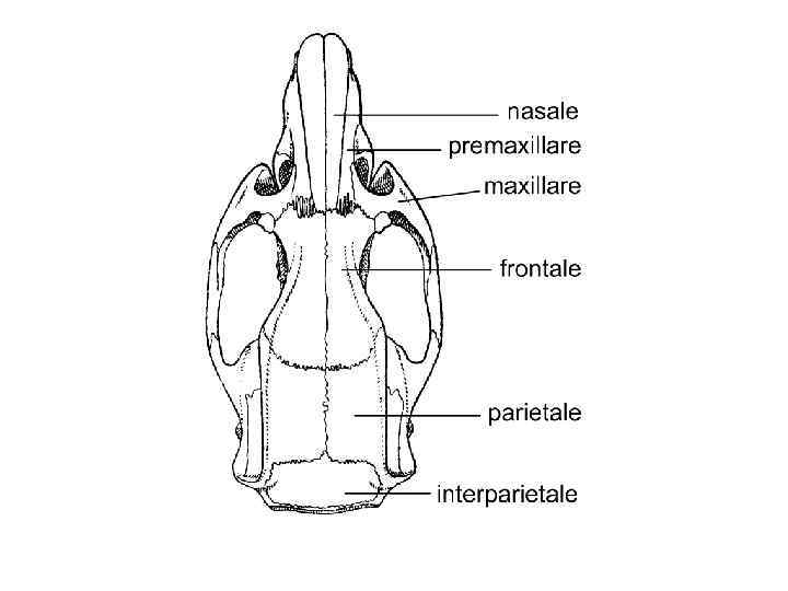 Череп Anura premaxillare vomer palatinum nasale frontoparietale orbitosphenoideum cartilago palatoquadratum parasphenoideum quadratojugale squamosum prooticum occipitale laterale pterygoideum columella (stapes)