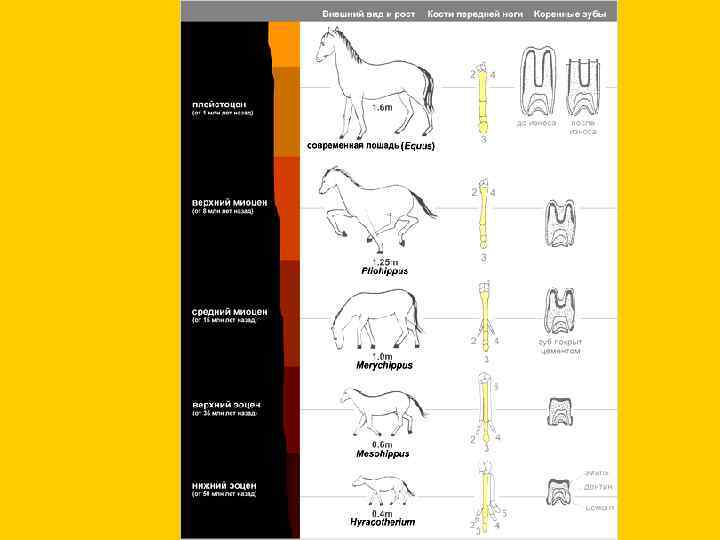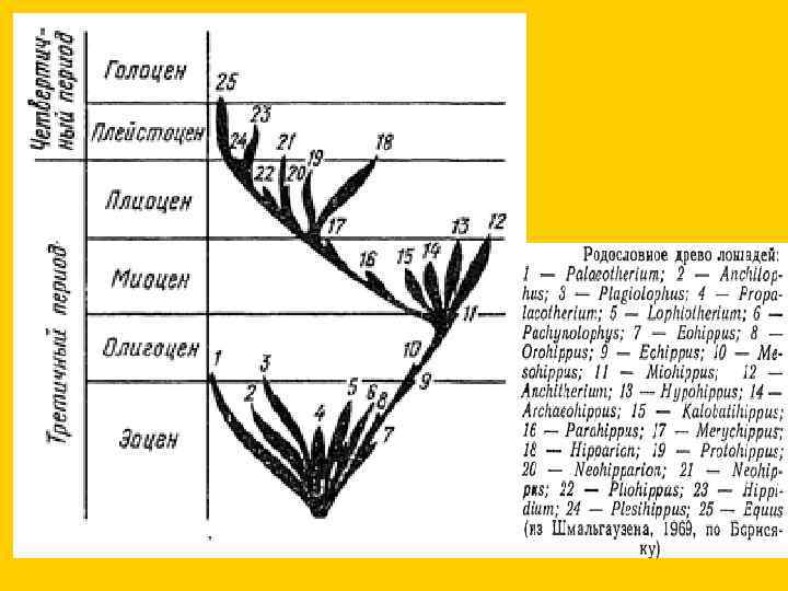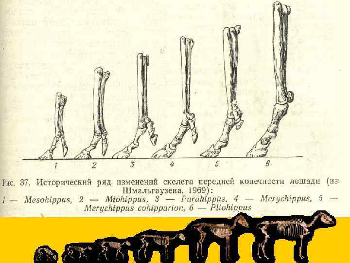 Расположение хищных зубов на верхней и нижней челюстях у настоящих хищных и креодонтов (по Шмальгаузену, 1969) Canis lupus Oxyaena • 1. Вытеснение менее приспособленной группы более приспособленной. • 2. Дивергенция каждого таксона в пределах своей адаптивной зоны — специализация с дроблением адаптивной зоны. • 3. Вымирание отстающей группы.