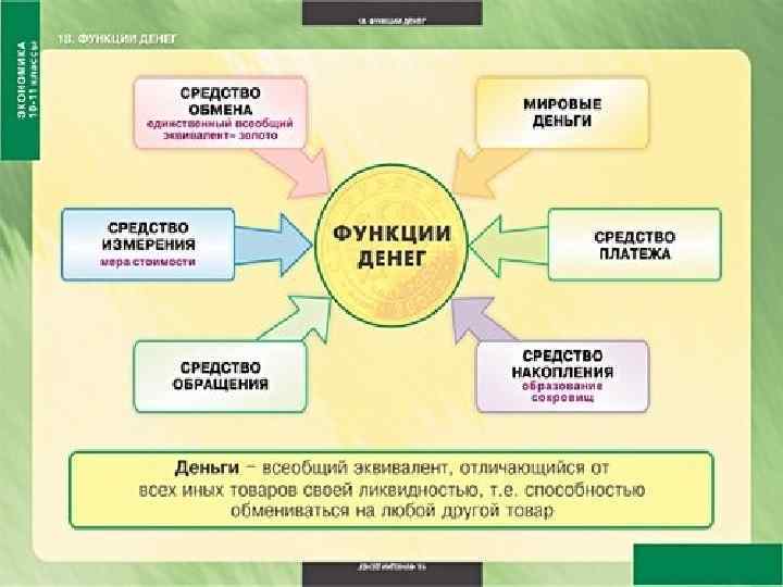 *Функции денег *Мера стоимости *Средство обращения *Средство платежа *Средство накопления. *Мировые деньги