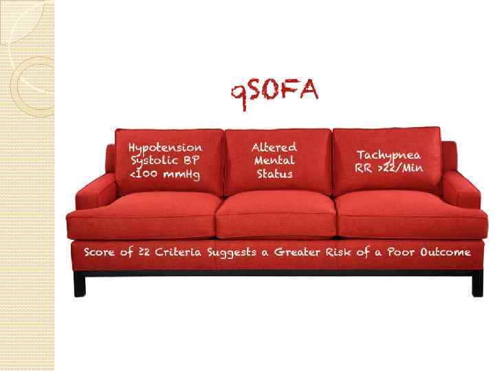 Критерии сепсиса Подозреваемая или документированная инфекция в сочетании с остро возникшей органной дисфункцией(ОД), о развитии которой заключают по индексу шкалы SOFA на 2 балла и более от базового значения